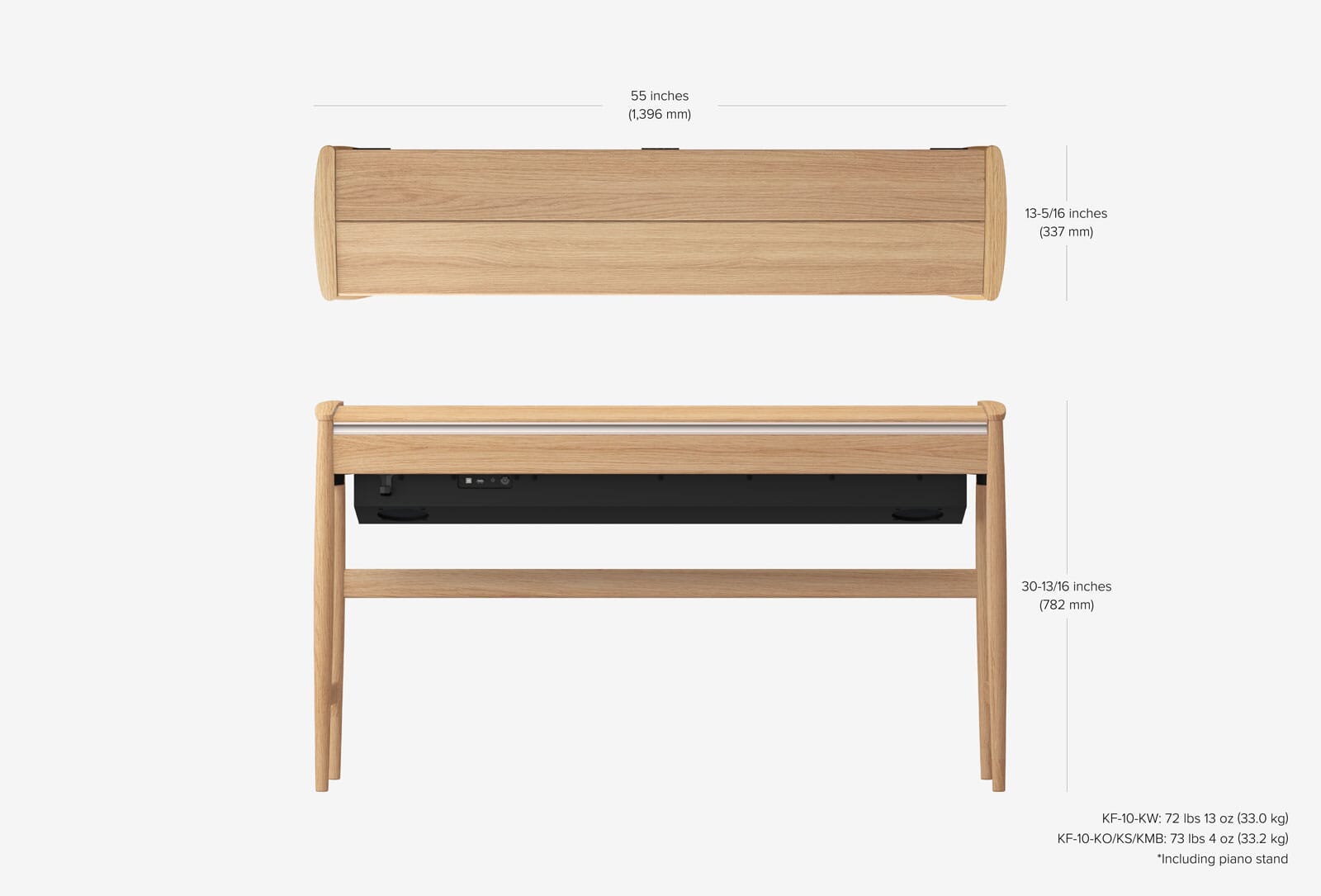 Den har trådlös Bluetooth-anslutning till dina appar. Kiyola KF-10 levereras i valnöt, ek och vitt.